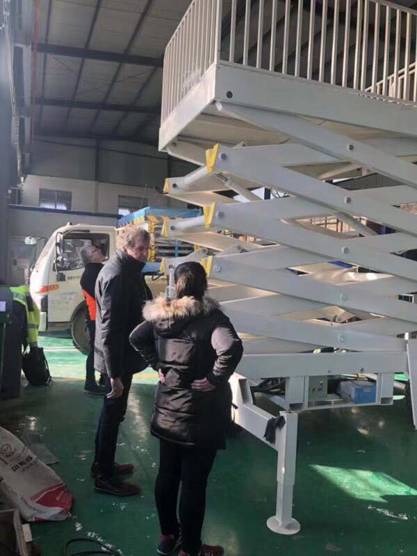 推薦產(chǎn)品 移動(dòng)剪叉式升降平臺(tái)發(fā)貨調(diào)試現(xiàn)場 車載式升降機(jī)從廣東發(fā)出 廣東升降平臺(tái)倉庫 出口產(chǎn)品,國外客戶來廠驗(yàn)貨